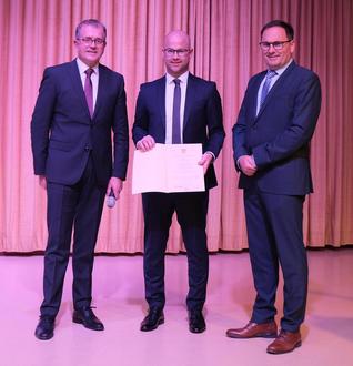 Daniel Melchert (Mitte) zusammen mit Amtsinhaber Thomas Scholz (links im Bild) und dem Vorsitzende der Gemeindevertretung im Marktflecken Mengerskirchen Manfred Gotthardt.