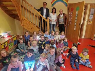 Mit fröhlichen Liedern bedankten sich die Kindergartenkinder für die Spende, die seit 2009 alljährlich von der Regenbogen GbR an die KiTa geht.