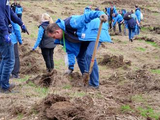 Die 130 Führungskräfte des Energieversorgers waren in drei Gruppen aufgeteilt. Die große Gruppe mit 90 Personen pflanzte Bäume und baute einen Zaun. Angeleitet wurden sie von Revierförster Winfried Bachl und insgesamt sechs Mitarbeitern. Die kleinere Gruppe mit 40 Personen half drei Mitarbeitern der Gemeinde etwas oberhalb der zu bepflanzenden Fläche bei Rückschnitt- und Pflegearbeiten am Waldrand. Wie Regionalleiter Jouke Landmann erklärte, sei man mit dem Marktflecken partnerschaftlich verbunden und wollte etwas machen – getreu ihrem Slogan „Energie. Besser. Machen.“. Aber der Spaß sollte dabei nicht zu kurz kommen.