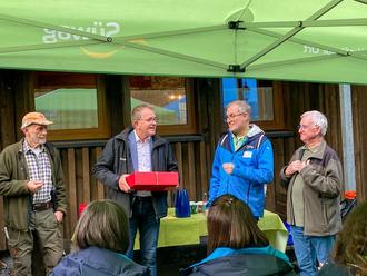 Begrüßt wurden sie von Bürgermeister Thomas Scholz. Nach anfänglichen Startschwierigkeiten hätten die Führungskräfte der Süwag plötzlich Dampf gemacht und mehr Bäume gepflanzt als angedacht. „Sie haben die Reihenfolge der zu pflanzenden Baumarten nicht eingehalten, aber das wird der Natur egal sein“, kommentierte Revierförster Bachl die Maßnahme. Gepflanzt wurden zur Hälfte Laubund Nadelholz. Der Mischwald soll in der Zukunft besser mit dem Klimawandel zurechtkommen, so Revierförster Winfried Bachl.