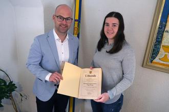 Daniel Melchert zusammen mit Tizia Weier bei der Übergabe der Gratulationsurkunde.