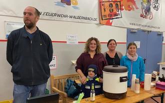 Am Feuerwehrhaus wartete der Förderverein mit Getränken und Speisen, sowie der Bürgermeister Herr Michalakelis auf die Kinder, um Brezel zu verteilen.