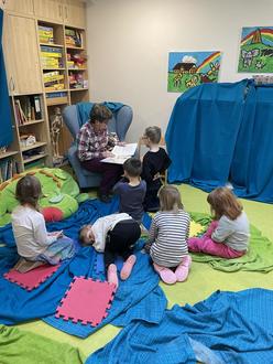 Theresia Kaufmann, Marita Reusch und Bärbel Weidig nahmen sich Zeit, den Kindern ausgewählte Geschichten vorzulesen. In der gemütlich gestalteten Atmosphäre der Kita-Bibliothek lauschten die Kinder aufmerksam den Erzählungen, ließen ihrer Fantasie freien Lauf und genossen die besondere Atmosphäre.