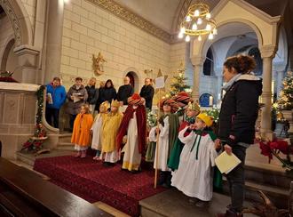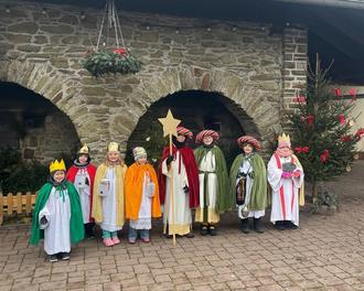 Wie schon in den vergangenen Jahren brachten die Sternsinger mit Unterstützung von Sängerinnen und Sänger sowie einem Trompetenspieler den Segen an verschiedenen Stellen im Ort.
