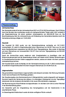 Berichte und Mitteilungen des Bürgermeisters in der Sitzung der Gemeindevertretung am