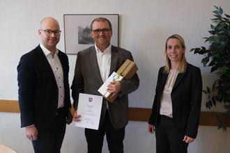 Daniel Melchert, der Bürgermeister von Mengerskirchen, schloss sich den Worten von Dr. Hofmann an und unterstrich die Bedeutung des Amtes für das dörfliche Zusammenleben. „Die Tätigkeit der Schiedspersonen findet im Dorf statt, wo jeder jeden kennt“, sagte Melchert. „Es braucht Geduld, Fingerspitzengefühl und manchmal auch Mut, um inmitten dieser sozialen Nähe neutral zu bleiben und Konflikte friedlich zu lösen. Doch es sind genau solche Menschen wie Thomas Just, die das Fundament unserer Gesellschaft bilden.“ Melchert betonte weiter, wie schwierig es sei, heutzutage Personen für dieses Ehrenamt zu gewinnen und bedankte sich ausdrücklich für das Engagement von Thomas Just, der mit seiner ruhigen und besonnenen Art viele Konflikte in der Gemeinde gelöst habe. Thomas Just nahm die Ehrenurkunde - sowie ein kleines Präsent der Gemeinde des Marktfleckens Mengerskirchen vertreten durch Bürgermeister Melchert - entgegen und bedankte sich für die Anerkennung seiner Arbeit.