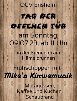 Der OGV Ensheim lädt am Sonntag, 09.07.2023 alle Mitglieder und Freunde des Vereins wieder zum Tag der offenen Tür in die Brennerei am Hämelbrunnen ein.