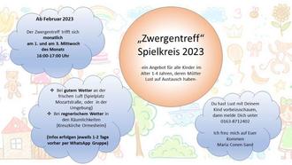 Die offene Krabbelgruppe für alle (Noch-nicht-) Krabbler und Lauflinge ist dienstags ab 10.00 Uhr. Sie verabredet sich über die WhatsApp-Gruppe: Mobilnummer 01776 261889. Ansprechpartnerin ist Elisabeth Weimerich.