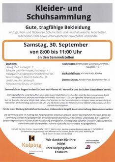 Soziale Projekte unterstützen an diesen Samstag (30.9.) mit Kleiderspende bei der Kolpingsfamilie