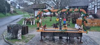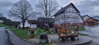 Mit viel Liebe und Geschick hat Familie Knoth den Ortsmittelpunkt in Gittersdorf österlich geschmückt. Auch ohne die Frühjahrssonne ein farbenfrohes Bild.