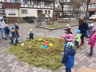 Neben dem Färben der Eier konnten die Kinder ihre Ostereier nach eigenen Vorstellungen bemalen oder mit Motiven bekleben. Auch bestand die Möglichkeit sein Osterei in Zwiebelschalen zu den sogenannten „Zwebbelärschen“ einzufärben.