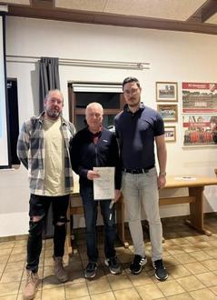 Als letzten Punkt wurde Albert Mans aus Ellingshausen für 60 Jahre Vereinszugehörigkeit vom Vorstand des TSV Mühlbach geehrt. (s. Bild) Er erhielt eine Urkunde und eine Armbanduhr des TSV Mühlbach. Albert Mans hat seit Jahren schon für den TSV gearbeitet, besonders als Trainer im Seniorenbereich, im Jugendbereich und bei den Damen, hierfür gilt unser herzlicher Dank. Festzustellen ist, daß immer weniger Mitglieder bereit sind Vereinsarbeit zu leisten und hierdurch auch ein fundamentaler Rückgang der Vereinsgemeinschaft im Ortsteil zu beklagen ist.