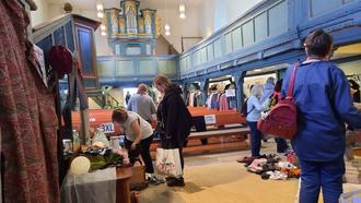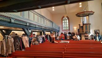Begeistert haben uns neben der lockeren Atmosphäre und der umfangreichen Auswahl an Klamotten in allen Größen und Farben, von sommerlich bis winterfest, aber vor allem die vielen liebevollen Details die zeigten, wie viel Herzblut in dieses Event geflossen ist. Zum Beispiel die gemütliche Café-Ecke im Chorraum der Kirche, wo man bei frischen Waffeln und Kaffee entspannen und ins Gespräch kommen konnte.