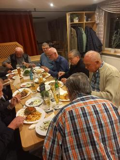 Am 14. März 2025 trafen sich 22 aktive und passive Mitglieder des MGV Obergeis im Hotel Will in Untergeis zur Jahreshauptversammlung für das abgelaufene Jahr 2024. Nach der Rückschau auf Veranstaltungen wie z.B. Sommerfest in Obergeis, Auftritte im Pflegezentrum Mühlengrund sowie im K&S in Bad Hersfeld standen anschließend an Totenehrung und den Grußworten von Engelhard Kolbe, dem Stellvertreter des Neuensteiner Bürgermeisters, diesmal keine Neuwahlen an. Somit konnten wir Teilnehmenden uns um unsere Gemeinschaft im MGV Obergeis, um die Herausforderungen der Gegenwart und Zukunft sowie das gute Essen im Hotel Will kümmern. Ergänzend dazu wurden als Beilagen die Berichte des 1. Vorsitzenden Manfred Simon, des Schatzmeisters Jürgen Nuhn und des Schriftführers serviert. Hier ergänzten sich die Wünsche von Engelhard Kolbe und dem Vorstand des MGV dahingehend, dass wir den Chorgesang zwar nicht vierstimmig aber gewaltig einstimmig hochhalten und fortsetzen. Dies tun wir auch mit Unterstützung von Sängern aus den ehemaligen Vereinen in Mühlbach und Raboldshausen. Es läuft als weiter rund in Neuenstein. Zum Nachtisch sangen wir in Begleitung von Helge Spahn und seinem Akkordeon noch einige Lieder und setzten den Abend in geselliger Runde fort.