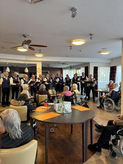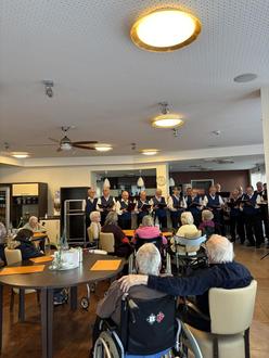 Auf wiederholte Einladung von Lisa Krönung aus der Seniorenresidenz in Bad Hersfeld trafen sich 18 Sänger des Männergesangvereines Obergeis 1894 e.V. am Samstagnachmittag, 26.04.2025 zum Liedervortrag in Bad Hersfeld. Nunmehr zum vierten Mal gelang es den Sängern unter harmonischer Akkordeonbegleitung durch Helga Spahn, die Zuhörerinnen und Zuhörer eine knappe Stunde lang mit elf sehr unterschiedlichen, bekannten Liedern zu unterhalten. Nach dem Lisa Krönung zusammen mit unserem 1. Vorsitzenden Manfred Simon die Anwesenden begrüßten und den Chor willkommen hießen, starteten wir in einen bunten Reigen aus Liedern von u. a. Freddy Quinn und Nicole sowie bekannten Volksweisen. Erneut trafen wir hiermit auf ein Publikum, das sich von den Liedern mitnehmen ließ in eine vielleicht auch eigene Vergangenheit. War doch zu erkennen, dass hier und da ein wiedererkennendes Schmunzeln in den Gesicherten erschien. Musik verbindet eben doch - und manchmal sogar über Jahrzehnte hinweg. Wir bedanken uns bei Lisa Krönung und deren Team im K&S für die herzliche Aufnahme und die prima Bewirtung mit dem Versprechen, in diesem Jahr auf jeden Fall gerne noch einem wiederzukommen.