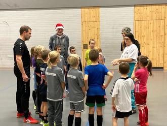 Mit einem professionellen Aufwärmtraining und interessanten Gesprächen sorgten Reinhild Möller und ihr Mann Reed Robinson beim Jahresabschluss unserer F-Junioren für ein besonderes Highlight. Beide sind von der Jugendarbeit unserer SG überzeugt und waren sofort mit Freude dabei, uns zu unterstützen. Gerade der Ansatz, Mädchen und Jungen schon vom Kindergartenalter an für den Sport zu begeistern, halten sie aus ihrer eigenen Lebenserfahrung für wichtig. Ist doch der Sport bestens geeignet, den Kindern Teamgeist, Fairness, gegenseitige Wertschätzung, und Selbstbewusstsein zu vermitteln sowie mit den Höhen und Tiefen des Lebens umzugehen. Da Reed in seiner Jugend begeisterter Football Spieler war und heute ein großer Fan der San Francisco 49ers ist, will er bei seinem nächsten Besuch mit unseren Kids American Football trainieren, was dann zu einer neuen Abteilung in der SG Neuenstein führen könnte.