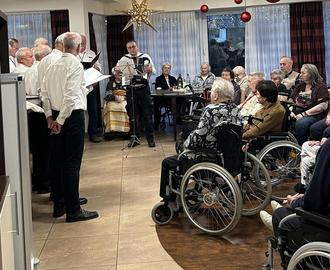 Am Sonntag, 17.12.2023 begeisterte die "Chorgruppe Oberes Geistal" die Bewohnerinnen und Bewohner der Seniorenresidenz K&S in Bad Hersfeld mit weihnachtlichem Gesang. Nach der Begrüßung durch Lisa Krönung von der Seniorenresidenz und einführenden Worten von Manfred Simon, dem 1. Vorsitzenden des MGV Obergeis, starteten die Sänger unter Leitung und Akkordeonbegleitung durch Helge Spahn mit dem Wachmacher "Capitano". Es folgte ein Reigen an Weihnachtsliedern von "Jingle Bells" in deutscher Fassung bis hin zu "Stille Nacht". Mit dem "Einsamen Glöckchen" und "Ein bisschen Frieden" verabschiedeten sich die Sänger bei ihrem Publikum und wünschten neben besinnlichen Weihnachtstagen einen guten Start in´s neue Jahr bei guter Gesundheit. Ein Wiedersehen bzw. Wiederhören wurde für das Frühjahr 2024 fest versprochen, wozu auch die hervorragende Bewirtung der Sänger durch Frau Krönung und Team mit Kaffee und Weihnachtsgebäck ihr Teil beitrug. Wir kommen gerne wieder!