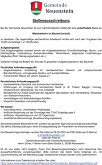 Bei der Gemeinde Neuenstein ist zum nächstmöglichen Zeitpunkt eine unbefristete Stelle als