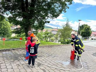 Ein großer Dank gilt auch der Feuerwehr, die uns aufgrund der Wetterlage spontan das Gerätehaus zur Verfügung gestellt hat und für die Kinder Spritzübungen angeboten hat.