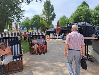 Die LGS ist eingeteilt in 4 Gärten. Der Wassergarten, Genussgarten, Kulturgarten und der Sonnengarten. Es ist ein Eingang. Man bekommt einen Stempel um dann ohne Probleme in einen anderen Garten zu wechseln. Es lässt sich sehr schön laufen auch mit Rollator und Rollstuhl. Die Senioren vom „Mühlengrund“ hatten einen Bollerwagen dabei um evtl. benötigte Sachen bereit zu haben. Es gab viel zu sehen. Der Wassergarten war sehr schön und hat Ruhe und Erholung ausgeströmt. Es gab Ruhebänke und allerlei zu bewundern. Mit einem mehr als 70 m hohen Aussichtsturm zwischen den Gartenschau Arealen haben die Besucher einen tollen Ausblick über die vier Gartenteile und weit darüber hinaus. In einer Blumenhalle sind besonders aufwendige Arrangements zu finden die zum Fotografieren einladen. Auch für kleine Besucher gibt es zahlreiche Spielmöglichkeiten. Eine lange Rutsche ist im Sonnengarten, der für Familien besonders empfehlenswert ist. Erstmals ist in einer Landesgartenschau in Hessen auch ein kleiner Tierpark integriert. Der Heimattiergarten profitierte vom LGS Geld und wurde von Grund auf saniert. Der Wassergarten lädt zu einem Spaziergang rund um den Auenweiher ein. Er wurde deutliche aufgewertet und taugt ebenfalls als Fotomotiv. Auch sind an vielen Orten der LGS Kunstwerke ausgestellt. Das Himmelszelt war von der Evangelischen Kirche. Das Motto „Blüh auf“ Hier war Anlaufstelle für Jung und Alt. Ja, man konnte hier getauft und auch getraut werden. Hochzeit und Taufe auf einer LGS. Das ist doch etwas ganz besonderes.