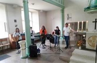 Das Thema des Gottesdienstes für die Konfigruppen des kirchlichen Kooperationsraums Gott versus KI ist ja hoch aktuell und wurde an mehreren Stationen interessant umgesetzt. Dies hatte Lucienne Rudolph mit Teamerinnen ausgearbeitet. Der musikalische Teil wurde von Lydia Wagner mit einem eigens dafür mit Konfis erweiterten Musik-Team des Get-Spirit Musikteams gestaltet.