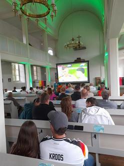 Die Idee, das Spiel in der Kirche zu zeigen, stieß auf große Resonanz. Viele Gemeindemitglieder und Fußballbegeisterte fanden sich ein, um dieses besondere Ereignis gemeinsam zu erleben. Die große Leinwand, die normalerweise für das Kirchenkino genutzt wird, sorgte dafür, dass jeder im Raum eine gute Sicht auf das Spiel hatte.