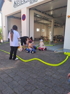 Der Förderverein der Kitas hat uns Dekoration und Feuerwehrhelme zur Verfügung gestellt.