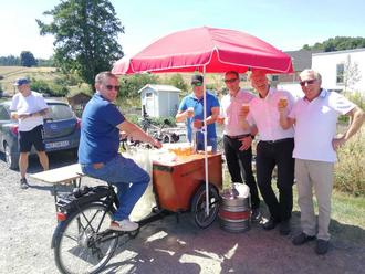 Und von Begegnung gab es im Anschluss an den Gottesdienst reichlich: Der Reit- und Fahrverein bot mit seinen engagierten Mitgliedern Köstlichkeiten vom Grill und frischen Kuchen an. Groß und Klein erfreuten sich an Ponyreiten, Kutschfahrten oder Hufeisenwurf. Als besondere Aktion gab es auch noch das berühmte Kirchenbier - diesmal aus dem Bierfahrrad.