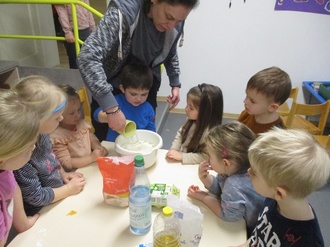 Leckere Waffeln zubereitet. Der Duft von frischen Waffeln zog durch die ganze Kindertagesstätte. Mmmhhh! Lecker, selbstgemachte Waffeln!