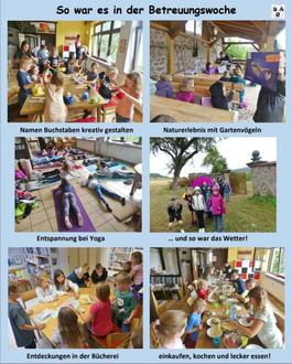 Es ging los mit der Betreuungswoche und jeden Tag ein anderes interesantes Erlebnis! Was kann man alles mit den Anfangsbuchstaben des Namens spielen? Welche Gartenvpgle lassen sich bei uns entdecken? Welche Bewegungen kann man auf der Yogamatte zur Entspannung machen? Was für vielseitige spannende Bücher sind in der Bücherei in Kirchheim zu finden? Und dann noch gemeinsam einkaufen und mit vielen Gewürzen eine leckere Tomatensoße zu den Spaghetti abschmecken! Das war eine tolle Woche!