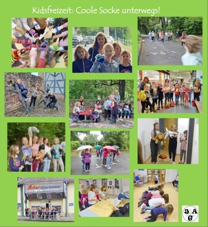 Wir waren auf der Kinderfreizeit mit tollen Coolen Socken unterwegs in Rotenburg. Das Wetter forderte uns immer wieder heraus, umzuplanen und die Aktivitäten anzupassen. Aber das klappte recht gut, da wir genügend Aktionen für draußen oder drinnen dabeihatten und manches einfach anders machten. Stadtspiel auf der Suche nach Coller Socke, Kino oder Socken-Olympiade, Shoppingtour im Rotenburg Center und Steckenpferde mit 46er Socken-Köpfen werkeln machten allen Spaß, da war das Wetter letztlich egal. Wir hatten zusammen erlebnisreiche, lustige und erholsame Ferientage!
