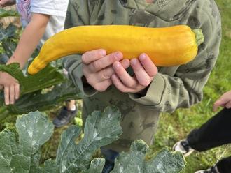 Mit viel Eifer und wöchentlicher Pflege – vom Gießen bis zum Beobachten des Wachstums – vergingen die Monate wie im Flug. Nach den Sommerferien war es dann endlich so weit: Die inzwischen zu Vorschulkindern gewordenen Küken durften ernten. Unter anderem wanderten frisch geerntete Zucchinis direkt vom Hochbeet in den Kochtopf, als Hauptzutat für eine leckere Zucchini-Kartoffel-Suppe.