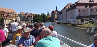 Am vergangenen Donnerstag besuchten die Neuensteiner Senioren Bamberg. Morgens um 7:00 Uhr waren alle Neuensteiner im Doppeldeckerbus und die Fahrt nach Bamberg konnte losgehen. Es wurde ein wunderschöner Tag. In Bamberg angekommen wurden wir von 2 Stadtführerinnen erwartet. Wir wurden herzlichst begrüßt und in zwei Gruppen aufgeteilt. Eine Gruppe für die, die nicht mehr so gut zu Fuß waren und die andere für die, die noch besser laufen konnten. Unsere Stadtführerin hatte eine Herzlichkeit, die war ganz besonders für ihr Bamberg. Sie hat uns von der Entstehung bis zur Gegenwart, heute sehr viel über Bamberg erzählt. Erstmals wurde Bamberg 902 erwähnt. Bamberg liegt wie Rom auf 7 Hügeln. Ist eine Universitätsstadt und Sitz des Erzbistums und ist seit 1993 mit seinem deutschlandweit größten noch erhaltenen historischen Stadtkern als Weltkulturerbe anerkannt. Es gibt eine historische Berg, Insel und Gartenstadt. An der Regnitz ging es entlang an den Fischerhäusern die die Bezeichnung Klein Venedig erhalten haben. Es war wunderschön anzusehen die Häuser mit dem Blumenschmuck. Die Häuser wurden auf Pfählen gebaut. Am Domplatz angekommen haben wir den Kaiserdom mit 4 Türmen besichtigt. Danach die Alte Hofhaltung wo die Kulisse heute noch zu Filmaufnahmen genutzt wird. Am Domberg ist auch die neue Residenz mit ihrem berühmten Rosengarten. Jetzt ging es in die Altstadt von Bamberg, wo das Alte Rathaus, das seit Jahrhunderten mitten im Wasser thront. Alle waren sehr beeindruckt und über so viel Geschichte, die wir erfahren haben. Jetzt ging es ins „Sternla“ wo wir uns alle gestärkt haben. Schäuferla oder oder. Echt fränkisch. Nach dem Mittagessen war eine Schifffahrt vom Alten Haften zum Neuen Hafen. Eine Schleuse mussten wir auch passieren. Ja es war ein schöner Tag und Bamberg ist so eine schöne Stadt, die sollte man einfach noch näher kennenlernen. Ein erlebnisreicher Tag ist auch einmal zu Ende und alle hatten viel Spaß in Bamberg. Danke dem Seniorenbeirat Neuenstein.
