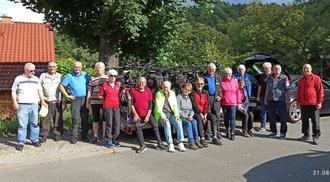 Bei herrlichem Wetter trafen wir uns wie immer auf dem Parkplatz neben der MZH in Obergeis. 15 Senioren wollten heute teilnehmen, da musste Hartmut (unser Ladechef) beim Aufladen der E-Fahrräder auf den Hänger die vorhandene Fläche optimal nutzen. Durch die Mithilfe aller, waren die doch recht schweren Pedelecs schnell und sicher postiert und befestigt. Die restlichen Fahrräder wurden dann auf die mitfahrenden Autos verteilt. In Untergeis holten wir noch Margret ab, ihre Panne wurde schnell behoben und los gings über die B27 nach Sontra.