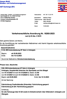 | Projektverantwortlicher Bauleiter | Hessen Mobil - Straßen- und Verkehrsmanagement Eschwege (PB 11) |
