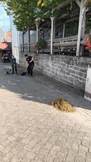 An der alten Schule erfolgte ein Hecken- und Baumschnitt, das Pflaster wurde gereinigt und das Tor der Fahrzeughalle neu gestrichen.