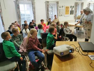 Am nächsten Tag ging es dann mit den Kindern und einigen Helferinnen und Helfern richtig los. Der vorbereitete Teig wurde mit weiteren Zutaten gemischt. Das waren Buttermilch und Salz. Jeder half mit, Luft einzukneten und schließlich Brotlaibe zu formen. In den freien Zeiten, in denen der Teig ruhen musste, konnten die Kinder das Anfeuern im Backhaus „Auf der Waldbach“ beobachten und einen Film über das Leben in vergangenen Zeiten sehen, das der Heimat- und Trachtenverein vor einigen Jahren nachgestellt hat. Er zeigte die Arbeitsschritte von der Aussaat des Getreides, über das Vorbereiten des Brennholzes, die Ernte und das Dreschen des Korns bis zum fertigen Brot. Aber nicht nur liebevolle Anleitung erhielten die Schülerinnen und Schüler beim Brotbacken, sondern auch für einen kleinen Imbiss sorgten die fleißigen Helfer. Schließlich wurden dann die Brote vom Vorbereitungsraum zum Backhaus getragen. Als nach einer Stunde Backzeit die Brote aus dem Ofen geholt wurden, waren alle stolz auf das Ergebnis. Die wunderbar dufteten Brote konnten nach Hause mitgenommen werden. Geschmeckt haben die selbstgebackenen Brote natürlich besonders gut. Als Obergeiser Spezialität konnten die Kinder auch noch vom leckeren Brotkuchen „Ploatz“ probieren.