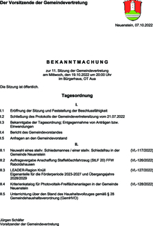 | 1.2 | Schließung des Protokolls der Gemeindevertretersitzung vom 21.07.2022 |