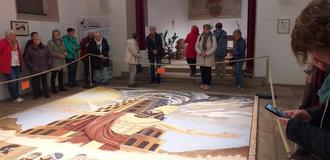 Der Seniorenbeirat Neuenstein hatte wieder zu einer Fahrt eingeladen. Diesmal ging es nach Ostheim vor der Rhön zum Wurstmarkt. Die Fahrt führte durch die Rhön mit seiner herrlichen Fernsicht. In Ostheim am Wurstmarkt angekommen, wurden Köstlichkeiten aus nah und fern an den vielen Ständen angeboten und probiert. Es gab Stracke aus Thüringen, Hessen und Bayern sowie Schinken, Wildschweinbratwurst, Fisch, Brot und vieles mehr. Auch Kaffee und Kuchen war dabei. Leckeres Eis natürlich auch. Die Blasmusik spielte schöne Musik auf. Da war von Langeweile keine Rede. Gegen 15:30 Uhr ging es wieder heimwärts. In Sargenzell (unser Foto) haben sich die Senioren noch den Früchteteppich angesehen. Es war wieder wie jede Jahr sehr eindrucksvoll. Das Motiv in diesem Jahr „ Der Turmbau zu Babel“. Alle waren begeistert und bestaunten das kunstvoll mit Körnern, Samen und Früchten gestaltete Bild. Dieses Jahr wurden 80 verschiedene Körner, Samen und aus gemahlenen Früchten Farben verwendet. Es war ein schöner und erlebnisreicher Tag. Dank an den Seniorenbeirat Neuenstein und Wilfried Hoßfeld