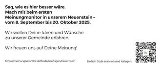 Wir wollen für Neuenstein etwas bewegen. Daher wurde die Umfrage bis einschließlich 31. Oktober verlängert.
