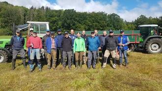 Insgesamt 17 Helfer und eine Helferin führten im September die diesjährige Pflegearbeit durch. Nach getaner Arbeit stärkten sich die hier abgebildeten Teilnehmer bei einer deftigen Brotzeit.