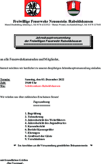 FFW Raboldshausen - Einladung JHV 3.12.2022