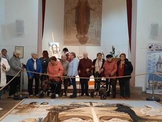 Kürzlich sind acht Gäste der Tagespflege im Mühlengrund, davon drei über 90jährige Damen, mit dem Bürgerbus nach Sargenzell zum Früchteteppich gefahren worden. Da die Seniorinnen wegen gesundheitlicher Bedenken nicht an dem vom Seniorenbeirat Neuenstein wundervoll organisierten Halbtagsausflug nach Sargenzell und in die Rhön teilnehmen konnten, wurden ihnen dieser Herzenswunsch von einem Vereinsmitglied von MuM erfüllt. Alle genossen die Fahrt im stets auf Beste gewarteten Bürgerbus. Petrus spielte auch mit, und bescherte ihnen eine sonnigen Herbsttag für diesen Ausflug. Alle waren glücklich, die Arbeit der 7 Künstlerinnen in der alten Kirche Sargenzells noch einmal erleben zu dürfen. Am Heimweg waren sich alle einig: „Wenn wir nächstes Jahr noch können, möchten wir das gern nochmal machen.“