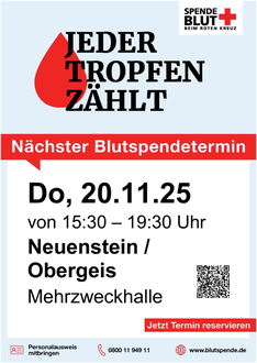 Reservierung ist wünschenswert. www.blutspende.de/termine