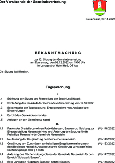 | II.6 | Aufstellung des vorhabenbezogenen Bebauungsplanes sowie der erforderlichen Änderung des Flächennutzungsplanes in Neuenstein, OT Saasen Bereich „Unter dem Baumgarten“ und Ortsteil Mühlbach Bereich „Auf der Höhe“ gemäß § 12 BauGB. | (VL-150/2022) |