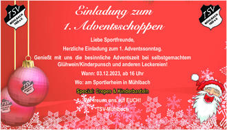 Genießt mit uns die besinnliche Adventszeit bei selbstgemachtem Glühwein/Kinderpunsch und anderen Leckereien!