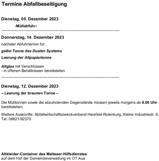 Weitere Auskünfte: Abfallwirtschaftszweckverband Hersfeld-Rotenburg, Kleine Industriestr. 6, Tel. 06621/92370
