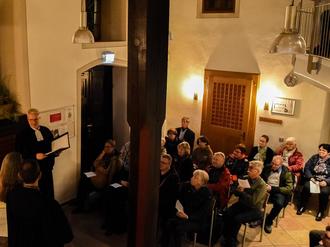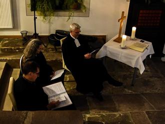 In der dann folgenden Pause konnte dann in kleinen Gruppen Gespräche geführt werden, anhand von eigenen Beispielen wie es einem selbst ergangen ist mit "Fraglich - Zögerlich - Hoffentlich". Die Lieder, die gesungen wurden, wurden vom Posaunenchor Raboldshausen (geleitet von Erwin Spill) musikalisch unterstützt und begleitet. Dafür erhielten sie den Beifall der Gottesdienstbesucher. Pfarrer Michael Zehender bedankte sich bei den Mitgliedern des Kirchenvorstandes, sie sorgten für das leibliche Wohl mit köstlichen Kleinigkeiten in großer Vielzahl und apart hergerichtet, so dass ein Jeder / ein Jede etwas für sein eigenen Geschmack fand. Der Schloss Neuenstein GmbH dankte er für die zur Verfügung gestellten Räumlichkeiten sowie allen übrigen Beteiligten für die Ausrichtung und Gestaltung des diesjährigen Buß- und Bettag 2024.