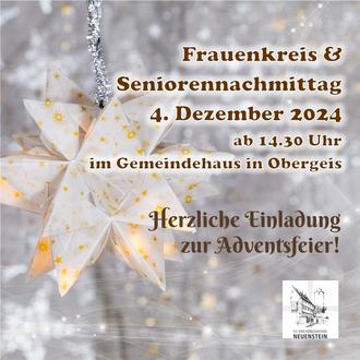 | 14.30 Uhr | Senioren- und Frauentreff, Adventsfeier | |