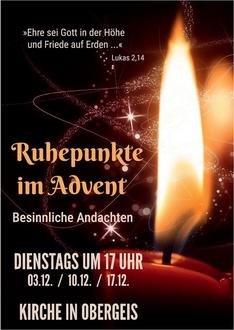 | 17.00 Uhr | Obergeis, „Ruhepunkte im Advent“ | |